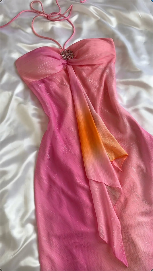 Pink Gradient Fashion Exquisite Beading Spaghetti Strap Long Chiffon Evening Gown Party Dress prom dressnv3579