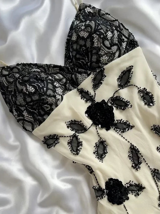 Ivory White Shiny Fashion Exquisite Beaded Lace Spaghetti Straps Long Chiffon Ball Gown Evening Dress Party Dress nv3576