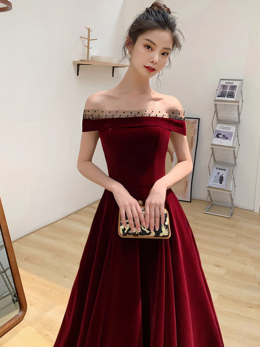 Elegant Burgundy Velvet A-Line Tie Floor Length Party Dress Deep Red Evening Gown Prom Dress nv1792