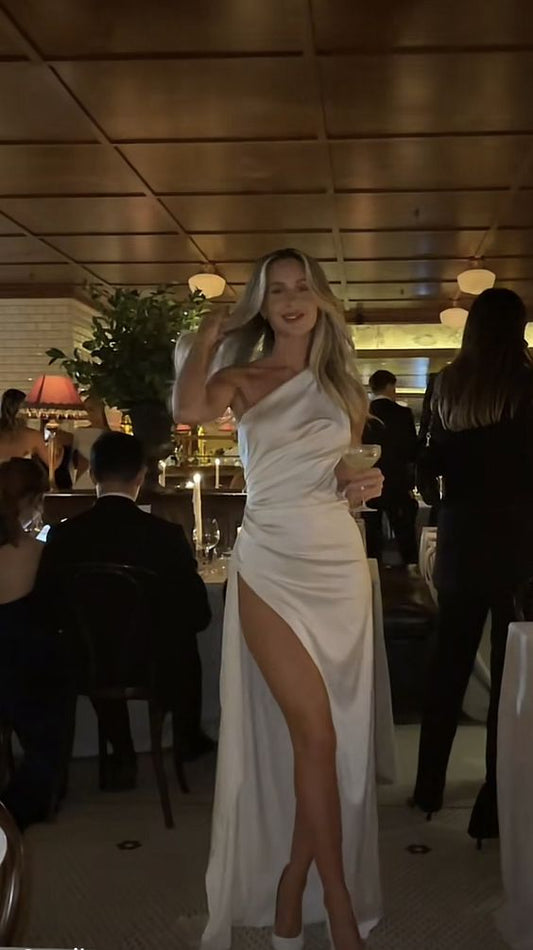 Elegant One Shoulder Side Slit Satin Bodycon Long Floor Length Ball Gown nv1787