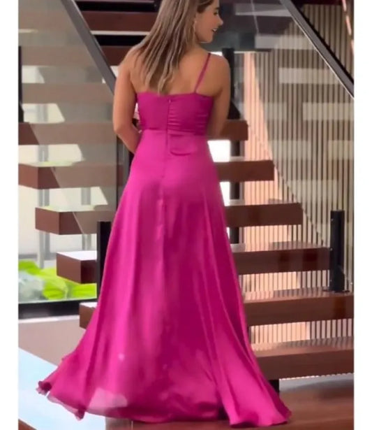 Sexy A line V neckline Sleeveless Party Dress Hot Pink Prom Dress nv1342