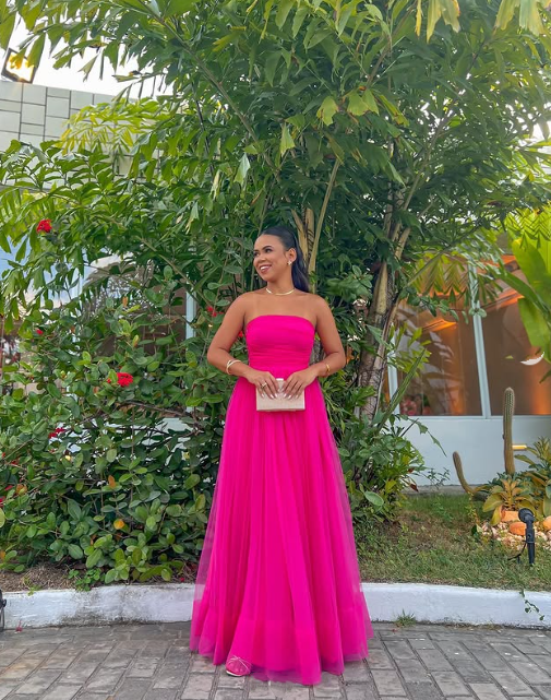 A Line Straps Tiered Chiffon Floor Length Long Prom Dress Pink Formal Evening Dresses nv1297