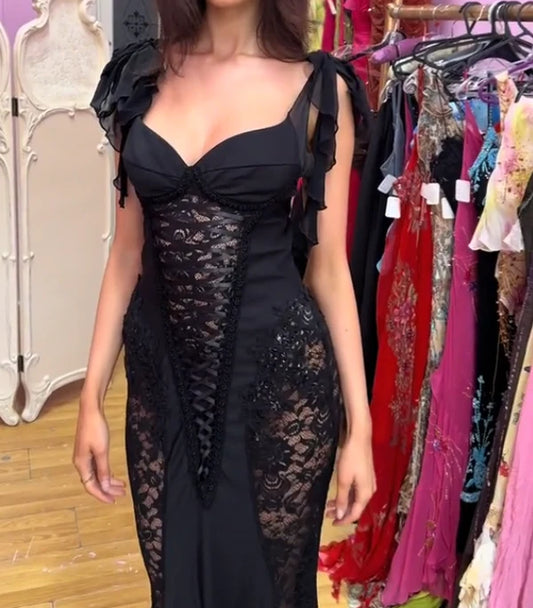 Sexy Black Fringe Lace Mermaid Evening Gown Long Ball Gown Evening Dress nv1857
