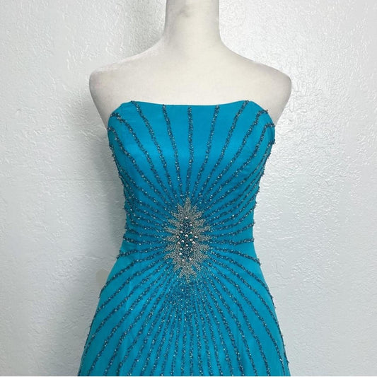 Blue Gradient Fashion Exquisite Beading Vintage Long Satin Ball Gown Evening Gown Party Dress nv4583