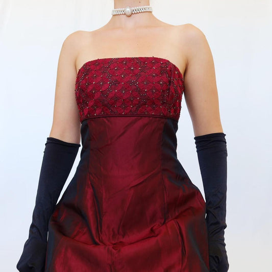 NiceVestidos--Burgundy Exquisite Floral Beaded Dress Vintage Dress Women's Long Tulle Ball Gown NV5648
