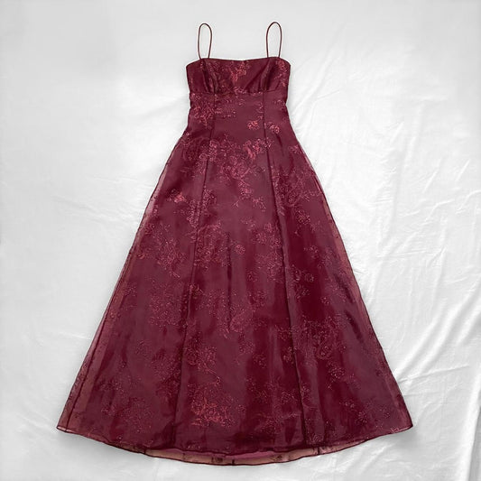NiceVestidos-Burgundy Red Floral Dress Vintage Dress Women's Exquisite Long Tulle Ball Gown NV5645