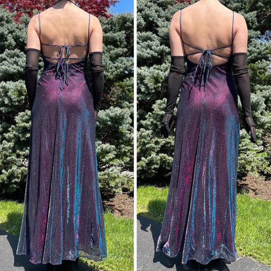 NiceVestidos-Purple blue shiny long satin fairy dress formal prom dress y2k vintage dress nv5444