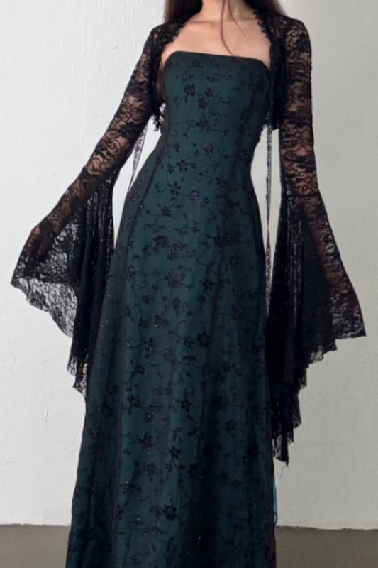 NiceVestidos--Dark green vintage exquisite floral long chiffon prom dress homecoming dress fairy dress Nv5587
