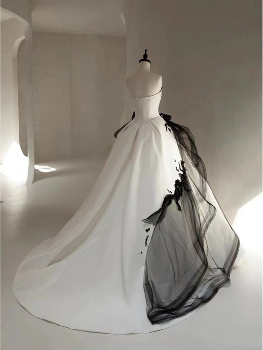 White gorgeous exquisite elegant lace black gradient long tulle ball gown evening dress wedding dress nv3363