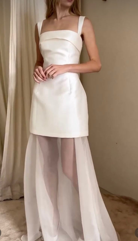 White simple elegant long satin tulle ball gown evening gown wedding dress nv2910