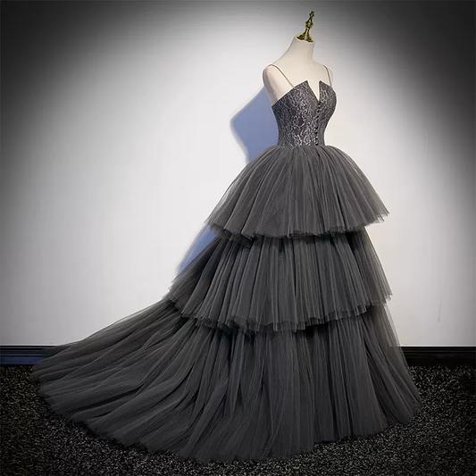 Sparkly Spaghetti Strap Beaded Ball Gown Prom Dress Long Tulle Quinceanera Dresses nv196