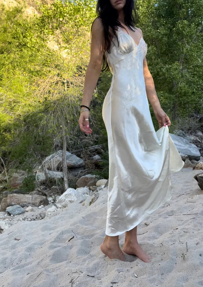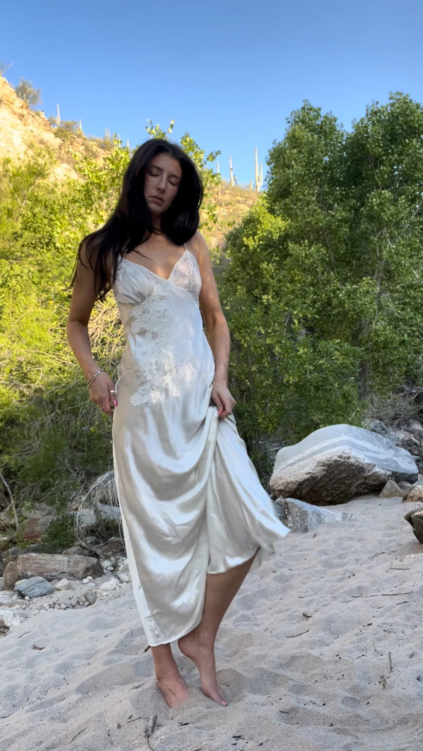 Ivory Stunning Floral Lace Adjustable Spaghetti-Shoulder Floor-Length Edgy Long Satin Cocktail Party Dress party dress nv4105