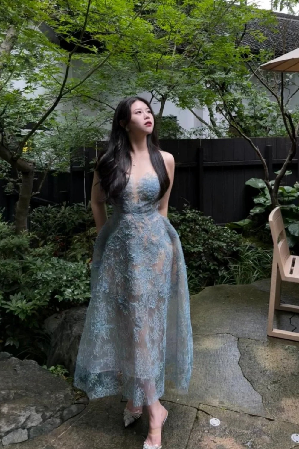 NiceVestidos--Short/medium-length tulle homecoming dress birthday dress blue delicate lace gentle fine sequins mesh elegant Cinderella blue princess dress #birthday outfit #fairydress #blue NV5669