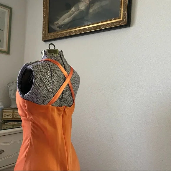 Orange Fashion Elegant Off Shoulder Exquisite Strap Long Satin Formal Prom Dress Evening Gown Party Dress nv3651