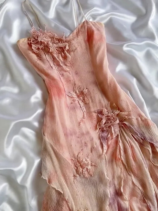 Robe de soirée longue en mousseline de soie, élégante et exquise, rose chair, à fleurs et perles, nv3827