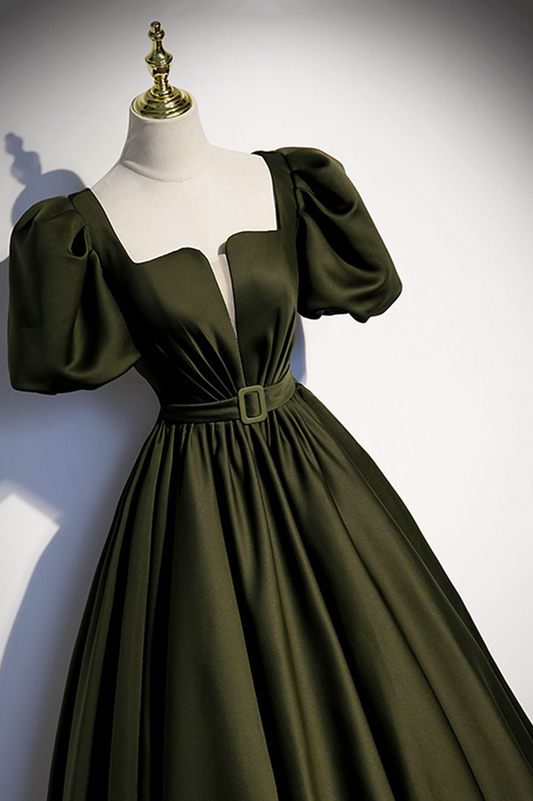 ROBE DE SOIRÉE LONGUE EN SATIN VERT ROBE DE SOIRÉE LIGNE A nv390