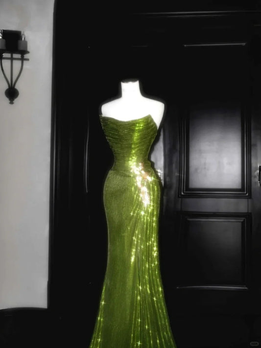 Le Magicien d'Oz 🍃 Charmante robe époustouflante avec des paillettes vertes scintillantes et magnifiques, robe de bal longue et au sol nv5203