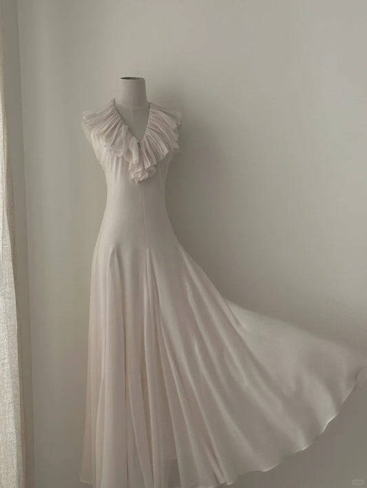 Robe de soirée longue en mousseline de soie, élégante, vintage, romantique, blanche, longueur au sol, pour anniversaire, vacances, mariage, invité, robe de bal, nv4072