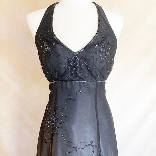 ✨Robe de bal à paillettes, magnifique robe de soirée vintage longue, dégradée, noire, bleue, argentée, en satin perlé, motif floral, robe de soirée nv4240