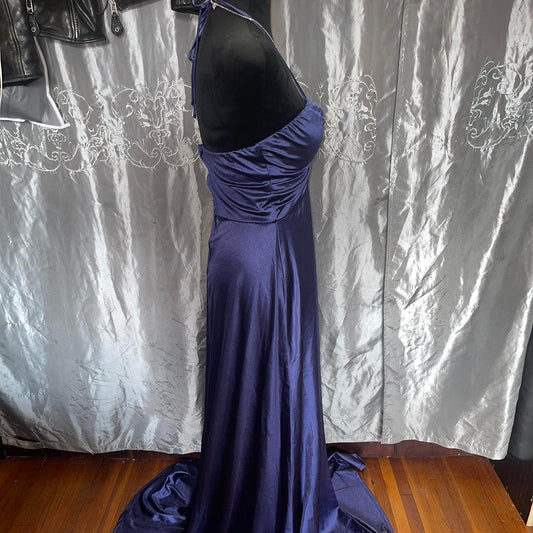 Robe de soirée longue en satin bleu simple et tendance nv4765