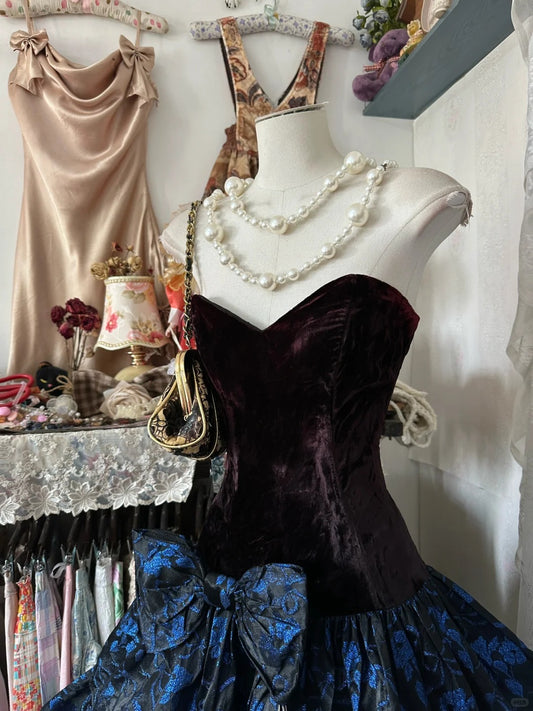 Robe de soirée courte à fleurs bleues, robe d'anniversaire, robe de soirée nv4368