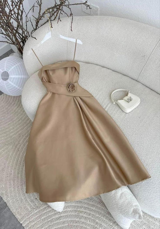 Robe de soirée courte à bretelles simple et tendance rose nv3006