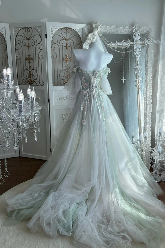 Fairy delicate embellishment long sheer formal dress NV6605