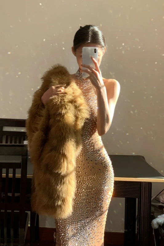 Shiny and elegant slim fit long suspender party dress, party girl exclusive dress NV6590