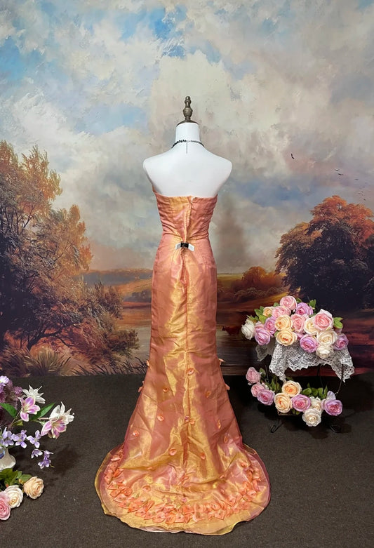 Robe de soirée longue orange brillante, élégante, vintage, à fleurs, perles, traîne, robe de bal, robe de bal nv4080