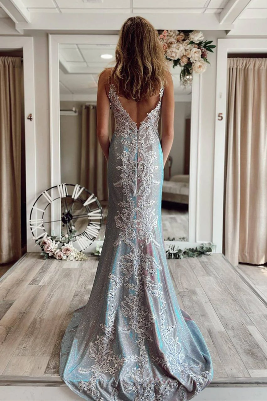 Robe de bal longue sirène à bretelles scintillantes avec appliques nv271