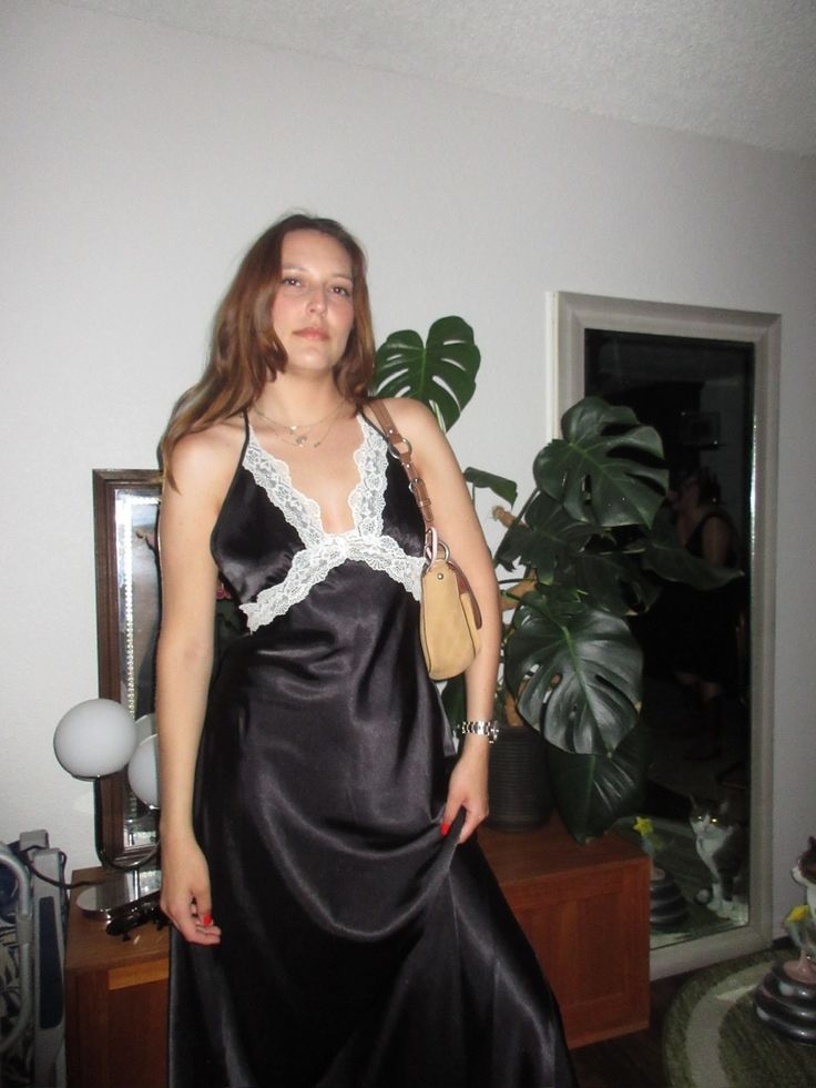 Robe de soirée longue en satin sexy et élégante avec décolleté en dentelle noire nv3299