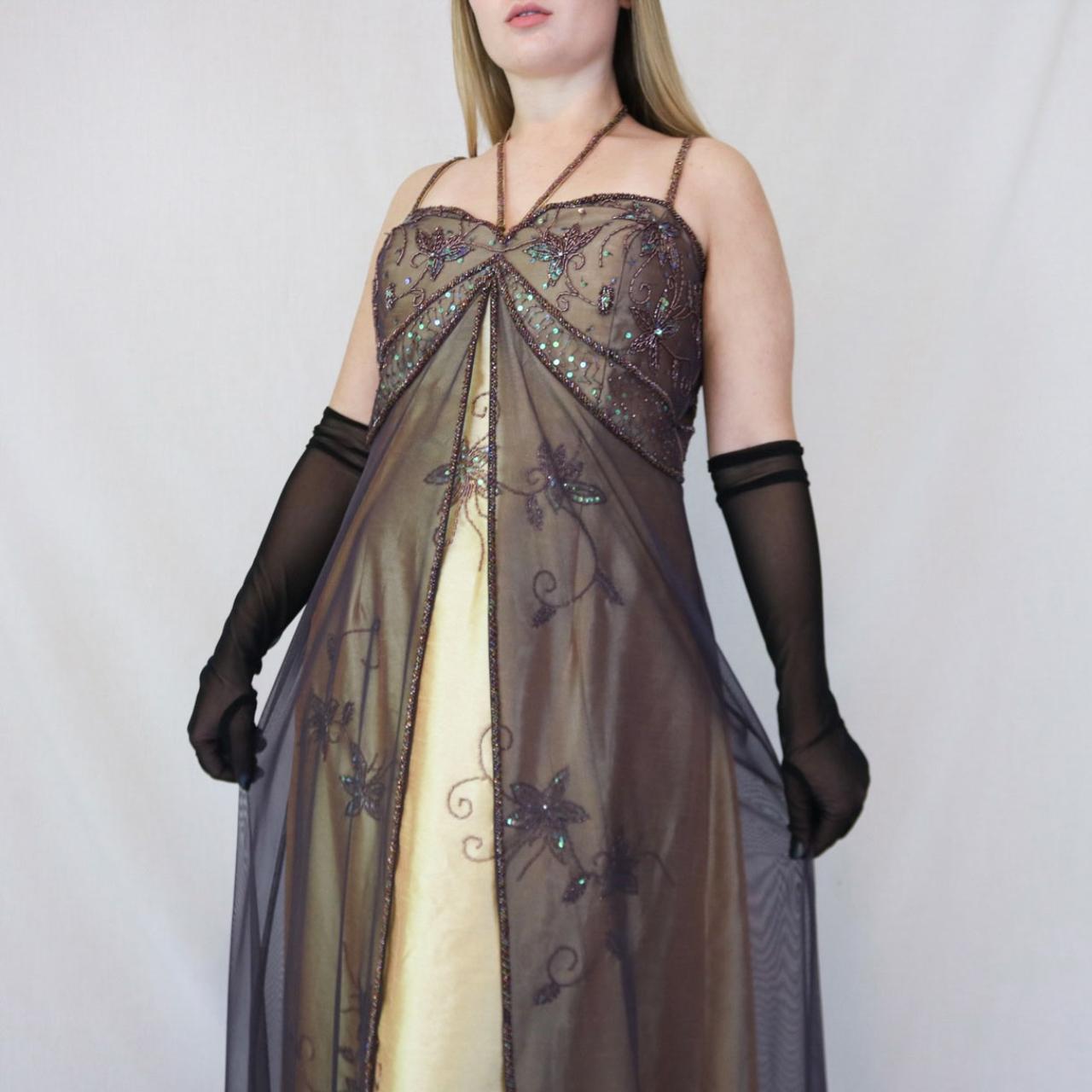 ✨ Empire Dress Vintage Gold Floral Glitter Ombre Beaded High Waist Long Tulle Formal Prom Dress Evening Gown Party Dress nv4983
