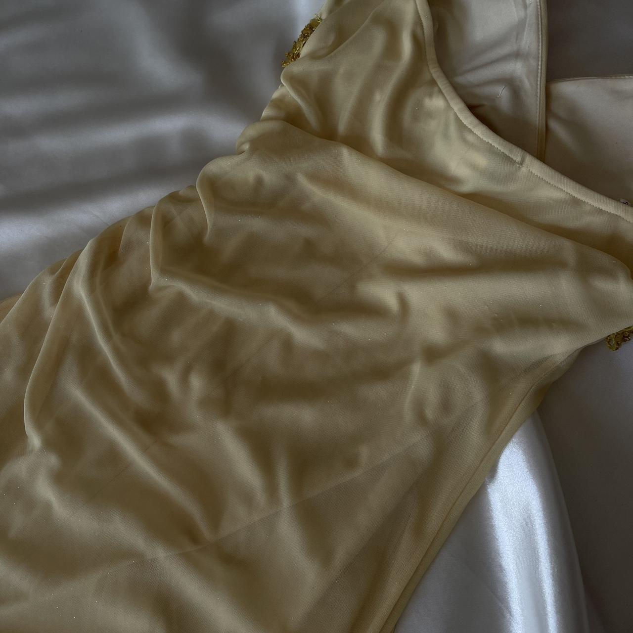 ✨Butter yellow fashion suspenders unique sparkling glitter sweetheart backless neckline beaded tassel long chiffon prom dress nv5378