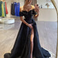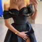 A-Line Off Shoulder Satin Black Long Prom Dress, Black Long Evening Dress nv1501