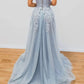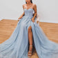 A-Line Sweetheart Neck Blue Long Prom Dresses, Blue Formal Graduation Dress nv1530