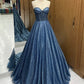 A-Line Sweetheart Neck Tulle Beads Blue Long Prom Dress, Blue Long Formal Dress nv1499