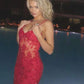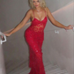 Red fashion sexy elegant lace spaghetti strap long birthday party dress prom dress evening dress nv1355