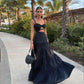 Black fashion exposed waist spaghetti strap long ball gown evening dress nv2959