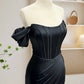 Black Off Shoulder Satin Mermaid Long Prom Dress, Black Long Evening Dress nv1609