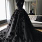 Black V-neck exquisite floral applique long tulle ball gown evening gown wedding dress nv3361
