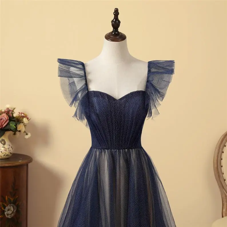 Navy Blue Sparkling Tulle A-Line Prom Dress nv612