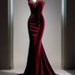 Burgundy Gorgeous Exquisite Beaded Lace Long Velvet Elegant Mermaid Slim Fishtail Skirt Ball Gown Evening Gown Party Dress nv3391