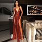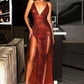 Burgundy shiny sequins V-neck long elegant sexy backless sleeveless front slit ball gown evening dress party dress nv59