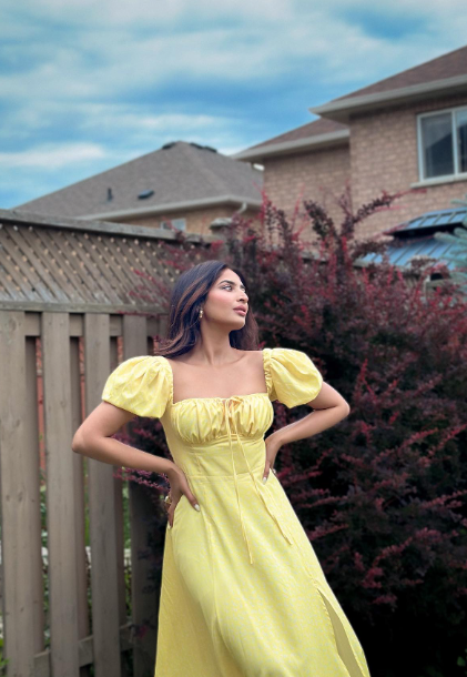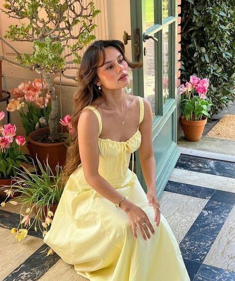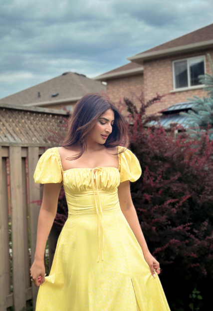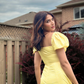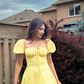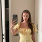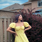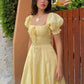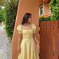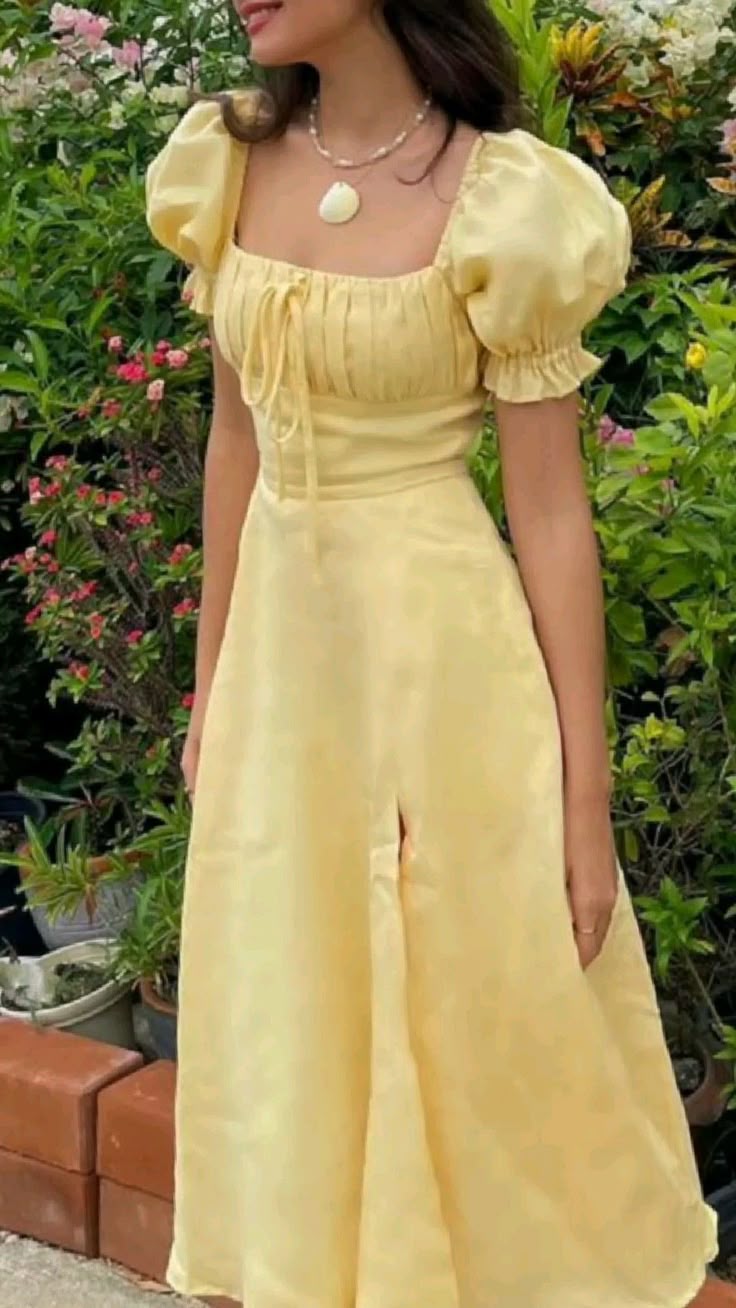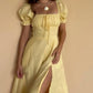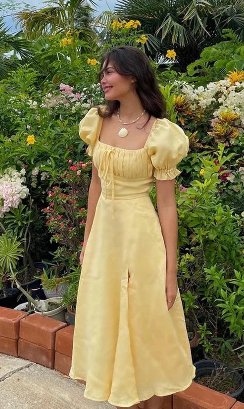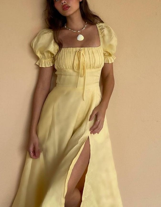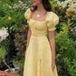 Yellow Elegant Long Puff Sleeve Slit Prom Dress Birthday Dress Evening Dress Wedding Guest Dress nv1710