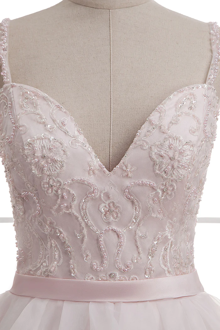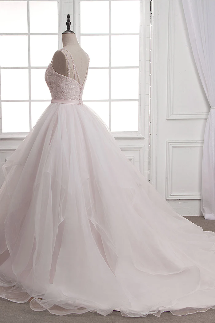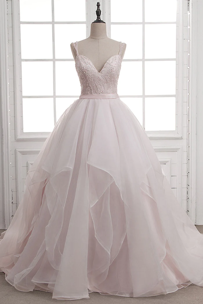 Chic Ball Gown Tulle & Organza Wedding Dresses with Beaded Embroidery & Ruffles nv605