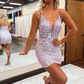 Glittery Sequins Deep V Neck Bodycon Homecoming Dresses,Short Prom Dress nv1251