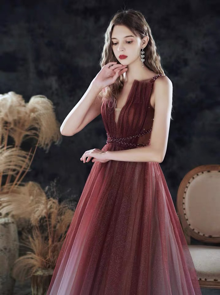 Sleeveless bridal prom gown, new, summer, red gradient prom dress, v-neck party dress nv618