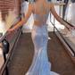 Light Blue Sequin Twist-Front Lace-Up Mermaid Long Prom Gown nv1370