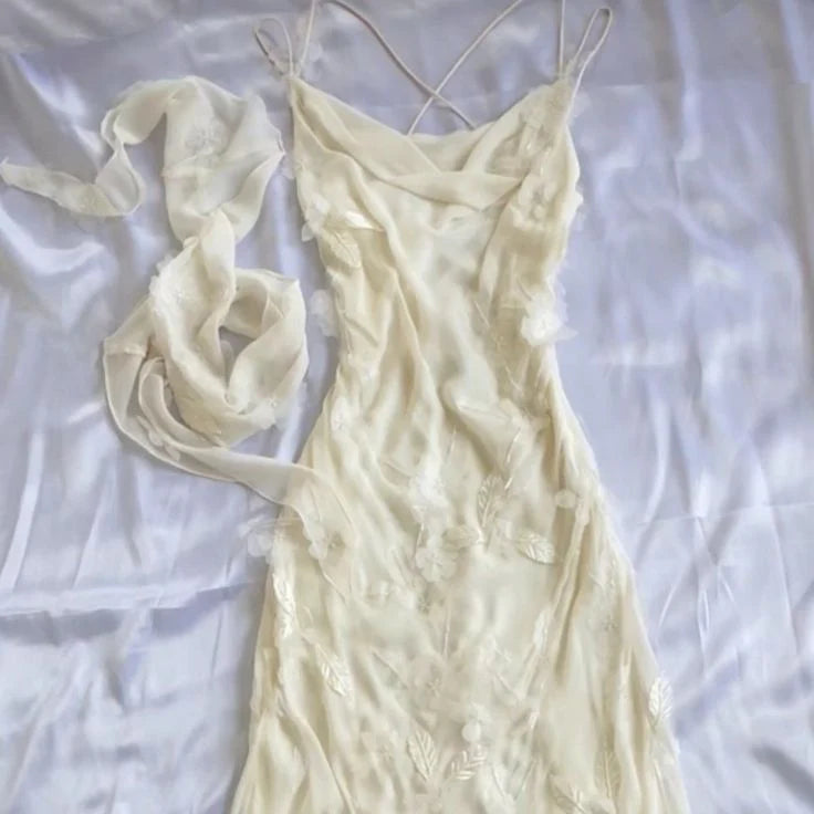 Light Yellow Fashion Elegant Floral Strap Long Chiffon Ball Gown Evening Dress Party Dress nv3519