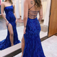 Mermaid One Shoulder Royal Blue Long Prom Dress with Criss Cross Back nv1099